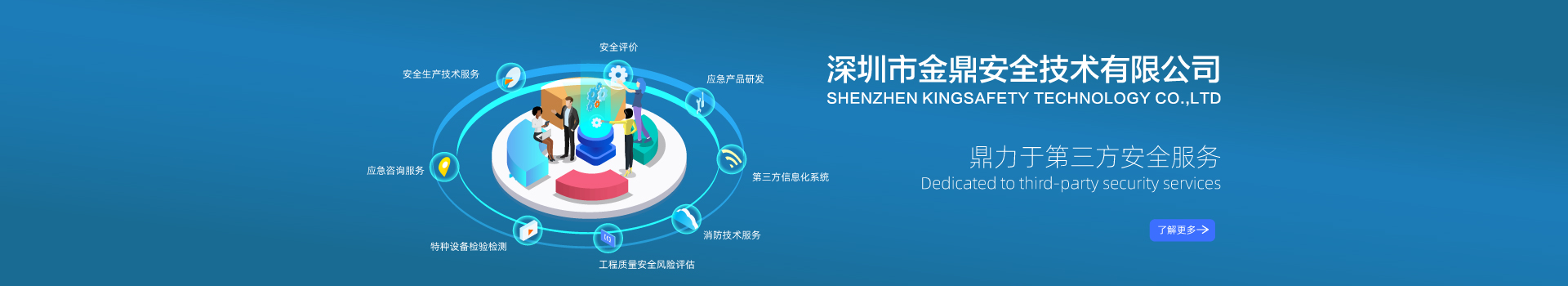 深圳市金鼎安全技術(shù)有限公司創(chuàng)立于2001年,深耕安全應(yīng)急咨詢服務(wù)領(lǐng)域二十余載,是一家集安全評價、標(biāo)準(zhǔn)化建設(shè)指導(dǎo)、消防評估檢測、特種設(shè)備檢測、工程質(zhì)量安全評估、宣傳教育培訓(xùn)、安全應(yīng)急和數(shù)字化運維于一體的第三方服務(wù)機構(gòu)。